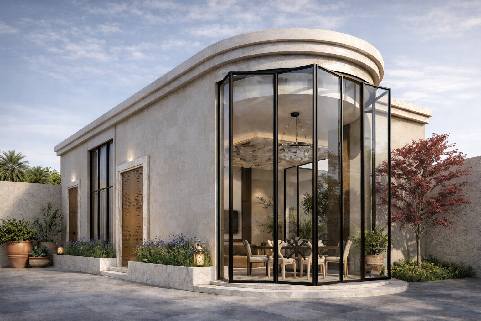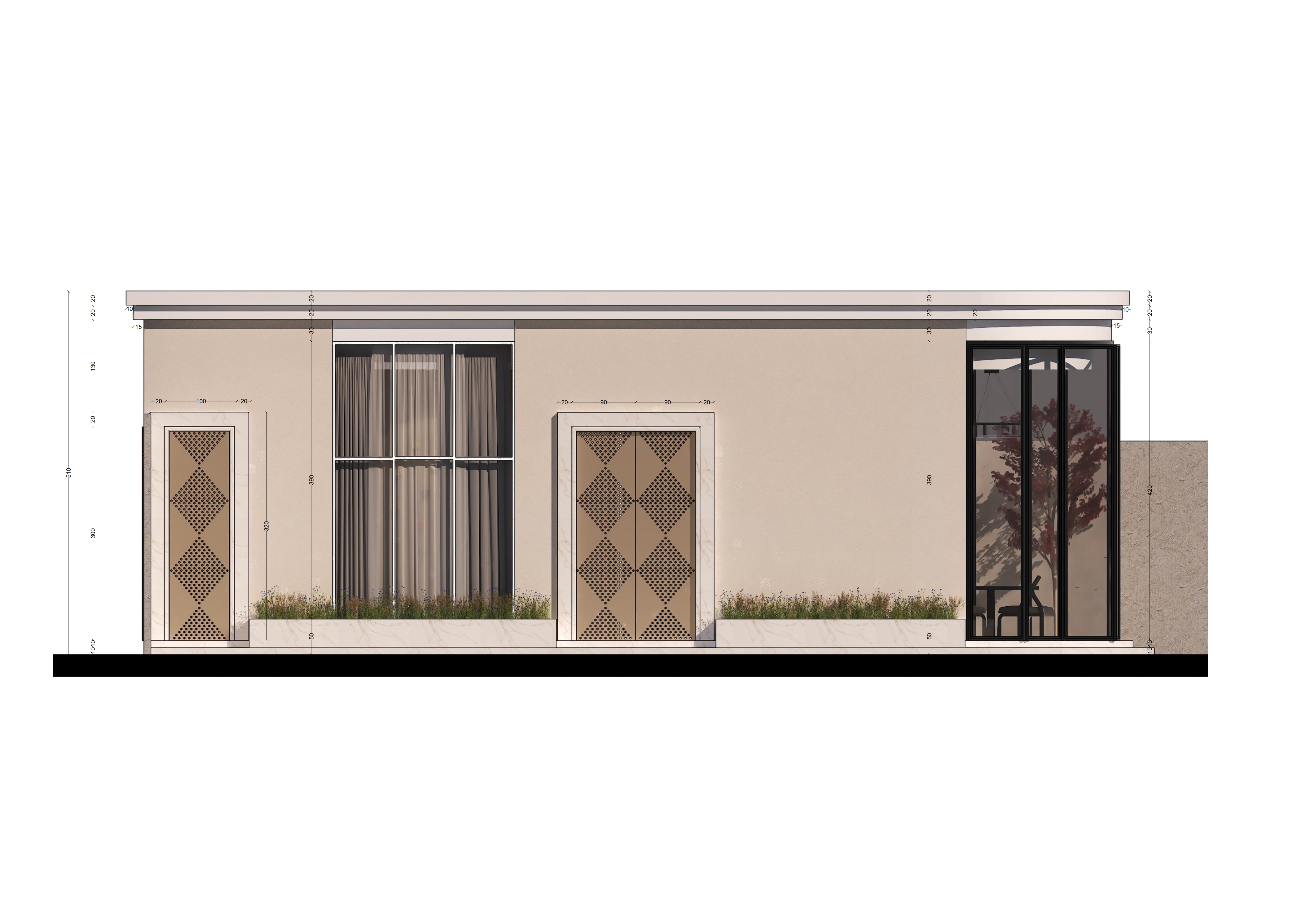 Our design principle for this project aims to reinterpret Najdi-style architecture and heritage. Inspired by the traditional Saudi Majlis, which serves as a space for gatherings, discussions, and activities that foster a strong sense of community, the client requested a Modern Majlis. This modern interpretation incorporates traditional elements to meet the client’s desire for a space that blends contemporary design with cultural heritage.